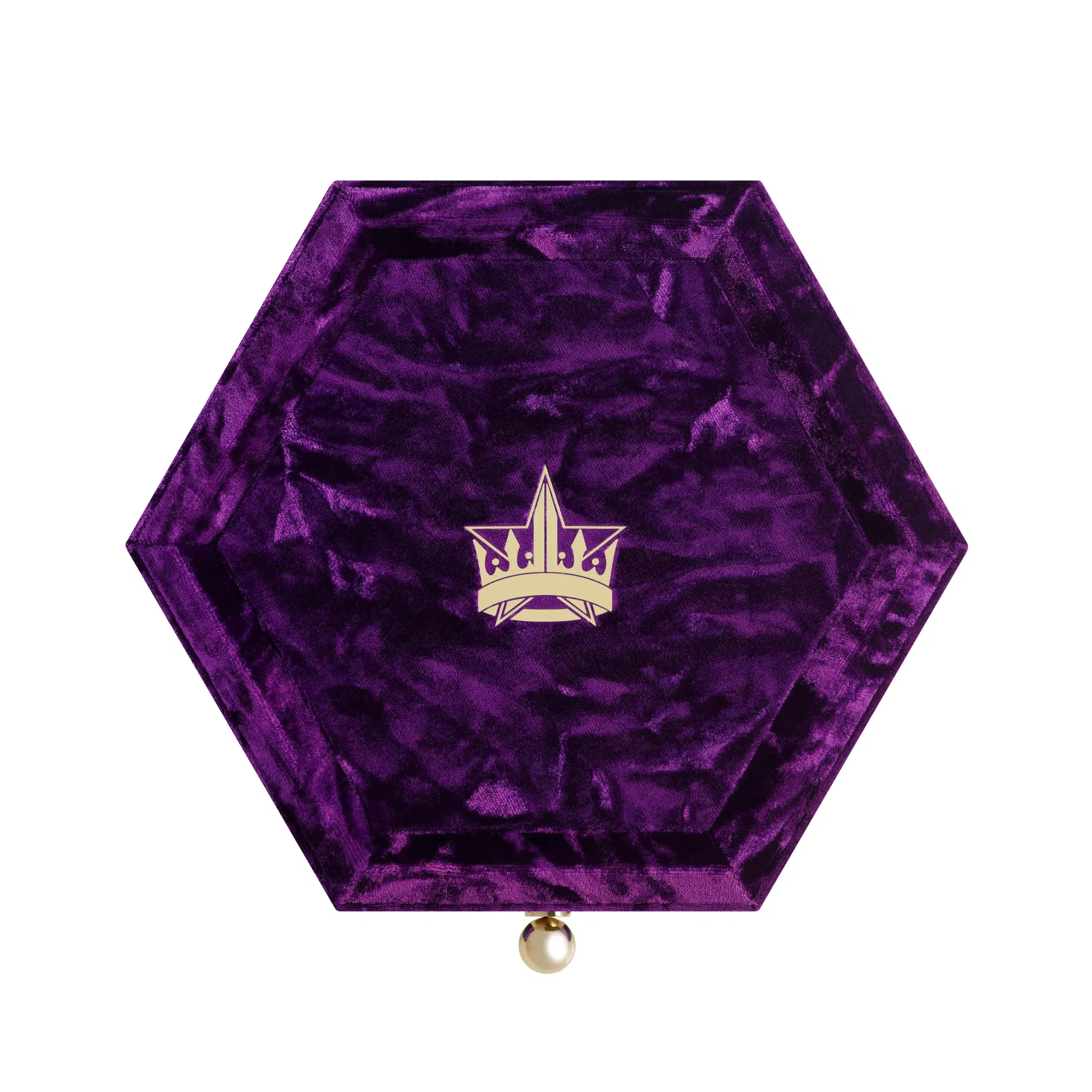 Presented in a high-end, crushed faux-velvet hexagon with a gold metal clasp for that mischievously royal final touch.