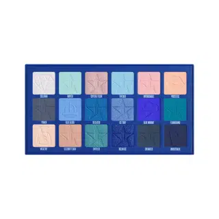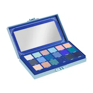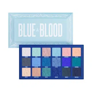 The Blue Blood Palette contains 18 eyeshadow/pressed pigment shades of stunning blues, mints, and peaches. This palette is inspired by high-end jewelry boxes & caskets. Enclosed in a metal clasp, this trunk is one of a kind.